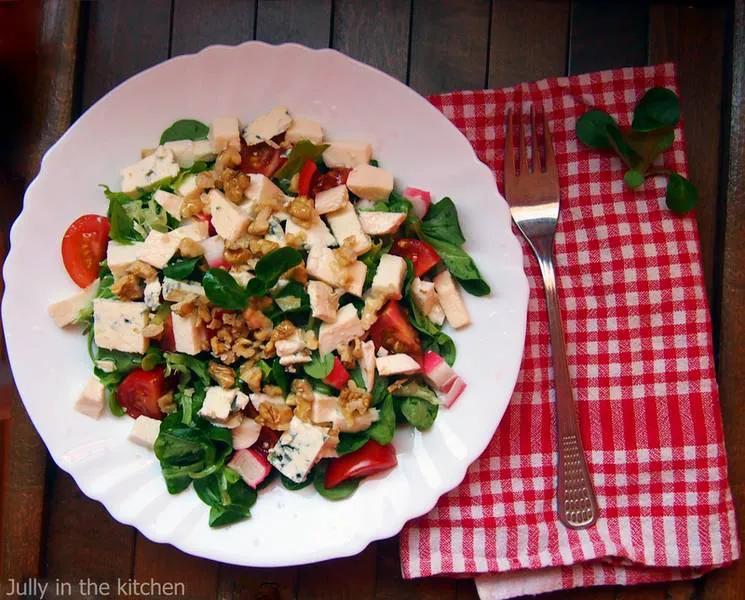 Салата с пиле и синьо сирене