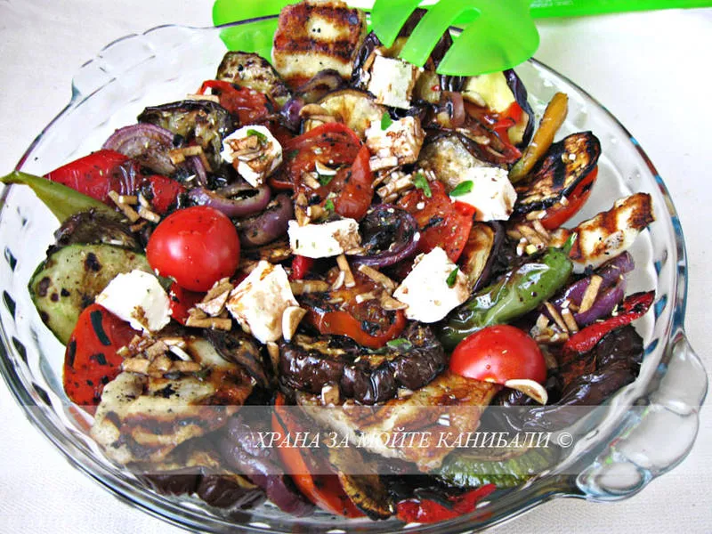 Салата от гриловани зеленчуци с печено сирене Халуми