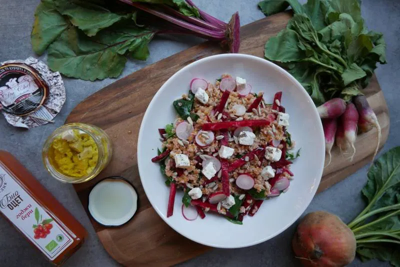 Салата от лимец, козе сирене и червено цвекло