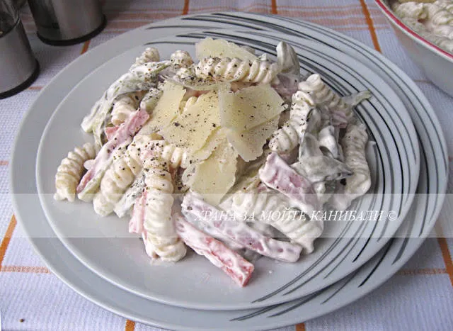 Салата от макарони с шунка