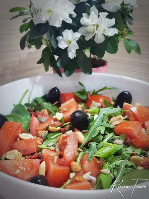 Поднесете салатата, гарнирана с медено - лимоновия дресинг