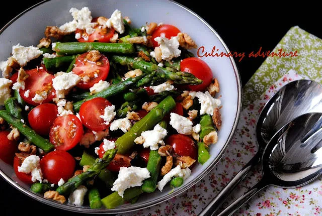 Салата с аспержи, домати и сирене