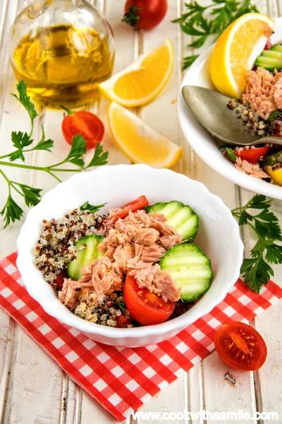 Хубавото е, че може да импровизирате със съставките за тази салата с киноа, риба тон и зеленчуци
