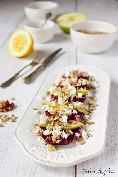 Салата с мариновано червено цвекло и ябълки
