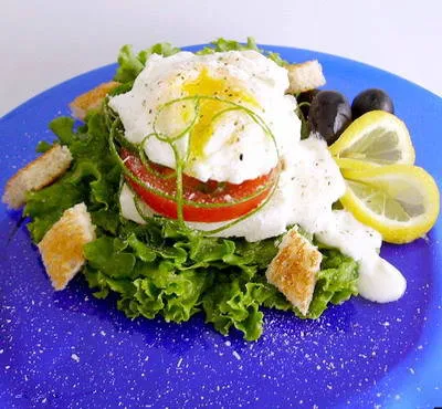 Поширане на яйце във фреш фолио. Впечатли ме резултатът - събран и гладък белтък, обвиващ сочен жълтък. Веднага го приложих към любима наша салата.