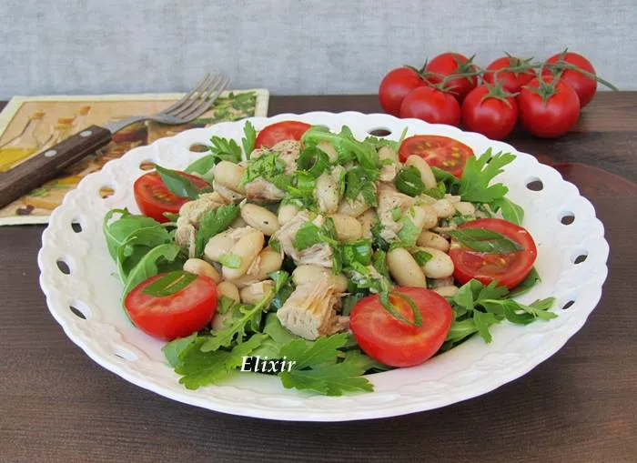 Питателна салата,която се приготвя бързо,а съчетанието е много добро и вкусовете се допълвят чудесно.