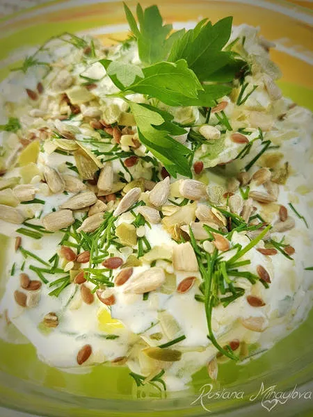 Салатата се охлажа и преди да се сервира се поръсва със семената.