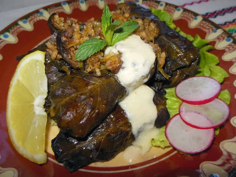 Сарми от лапад с бял сос