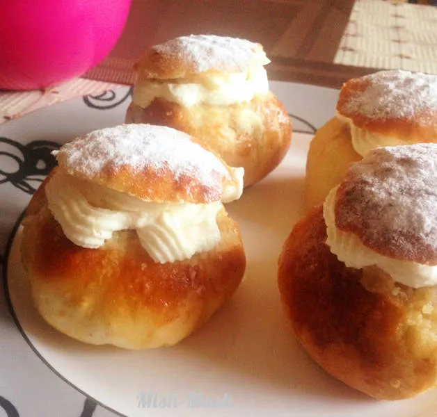 Semlor (Шведски кифлички с бадемов крем) - По традиция тези кифлички се консумират всеки вторник между Сирни Заговезни и Великден.