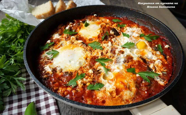 Шакшука е арабско ястие, което се състой от доматен сос с люти чушки, кимион и др., в който се готвят цели яйца.