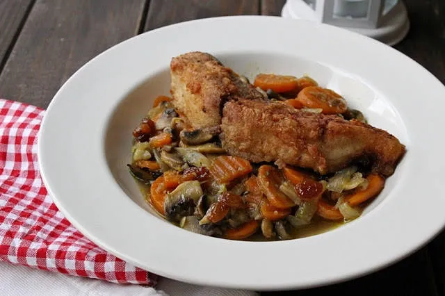 Рибата се пържи, след което се сервира върху задушени, сварени или печени зеленчуци със сос. Може да се запиче върху зеленчуците, друг път компонентите се подготвят поотделно и се сервират заедно