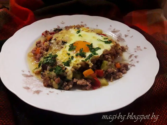 В стремежа си да приготвя класическата мусака с кайма и картофи, късно видях че картофите са ми само 2 броя. И компенсирах липсата на останалото количество с други зеленчуци - чушка, моркови, тиквичка