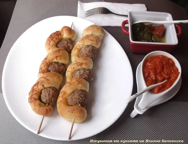 Шишчета от кюфтенца с билков хляб и кашкавал