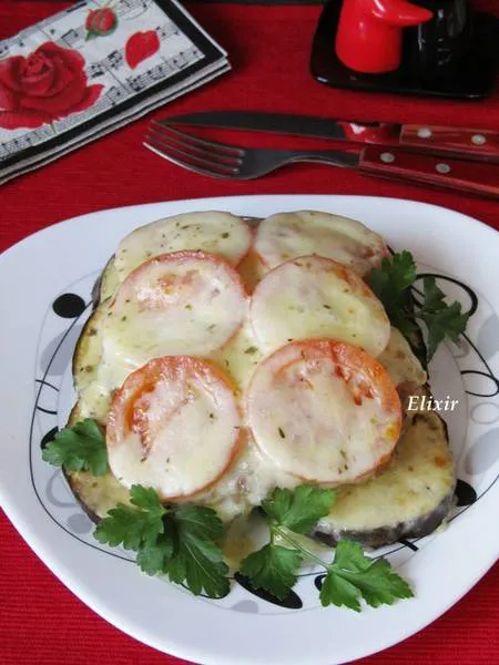 Подредете канапе от шайби зеленчуци, покрийте го с шницел от мляно месо ,гарнирайте с домат, моцарела и настърган кашкавал, запечете и се насладете на едно чудесно ястие.