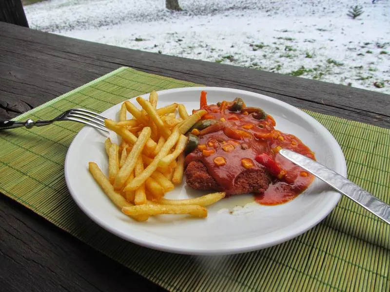 Това е немска рецепта - Zigeunerschnitzel, която може да си поръчате традиционен Цигански сос, отличаващ се с наситения си червен цвят, използването на няколко цвята чушки и леко лютичък.