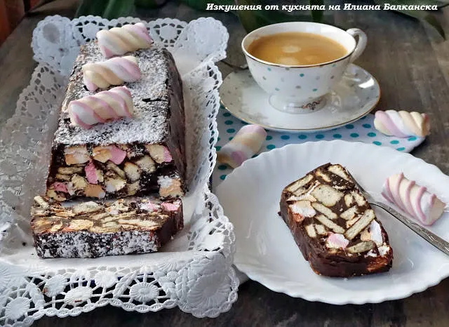 Шоколадов десерт с бисквити и бонбони маршмелоу