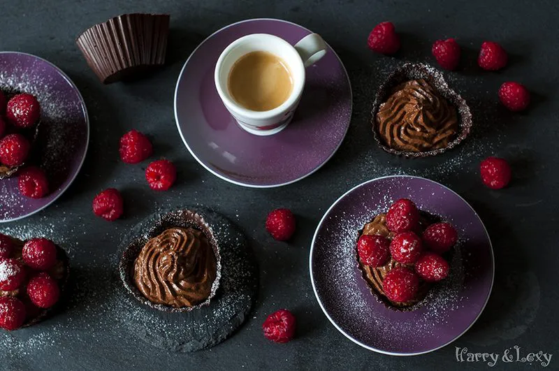 Двойно шоколадов мус с малинов сос
