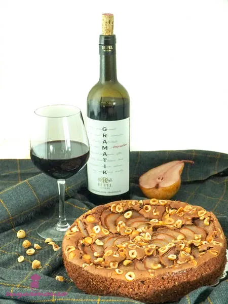Шоколадов сладкиш с лешници, круши и синьо сирене