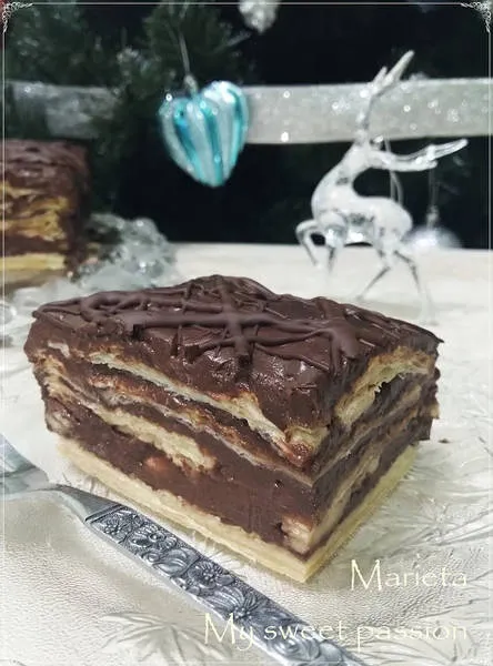 Преди поднасяне гарнирайте тортата с резенчета банан и шоколадов ганаш.