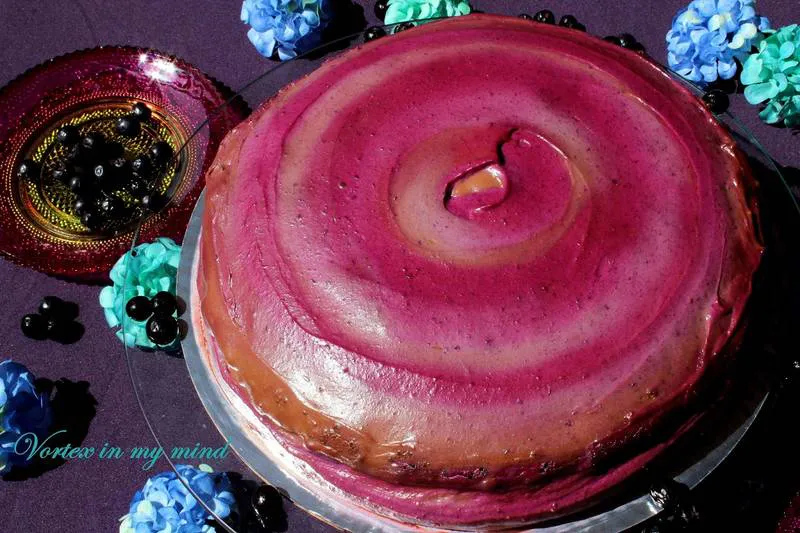 Торта за рожден дден - с два нежни ароматни муса – от шоколад и от боровинки, и уплътнявайки ги с пухкави шоколадови блатове.