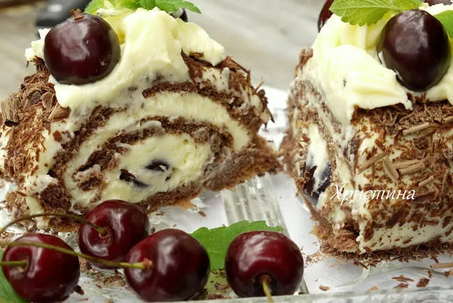 Череши без термична обработка, обгърнати в руло със свеж и вкусен крем