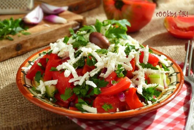 Класика. Най-вкусна е с продукти набрани в градината. Шопска салата с домашен дъх