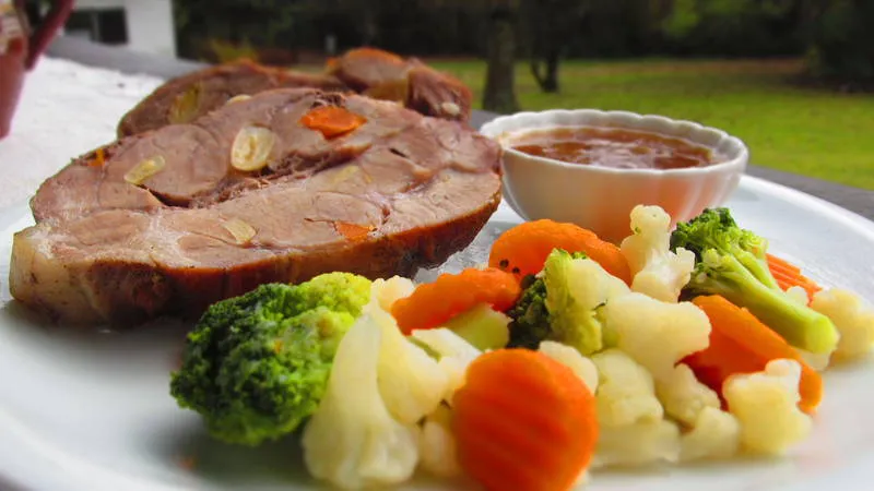 Шпиковането е една позабравена технника за овкусяване на месото. Нарязаното готово месо е с вид на мозайка. Красиво и ароматно!
