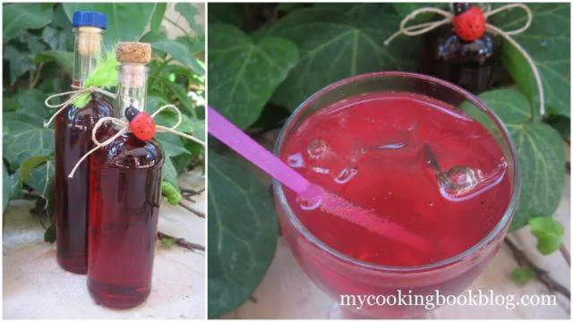 Това е любим сироп - разхлаждаща напитка през лятото или да полеем крем с него. Приготвен по стара проверена рецепта от нашите баби - с варене и за по-голям аромат и с вишневи листа