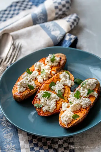 Печен сладък картоф с козе сирене и розмарин