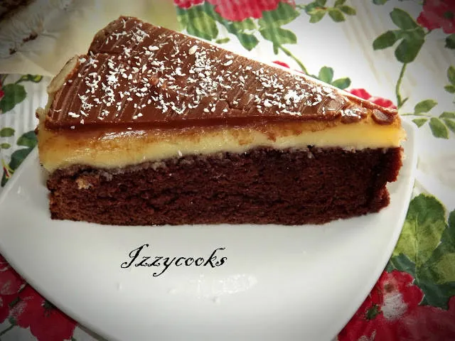 За глазурата разтапяме шоколада и маслото, оставяме леко да се охлади и заливаме сладкиша.