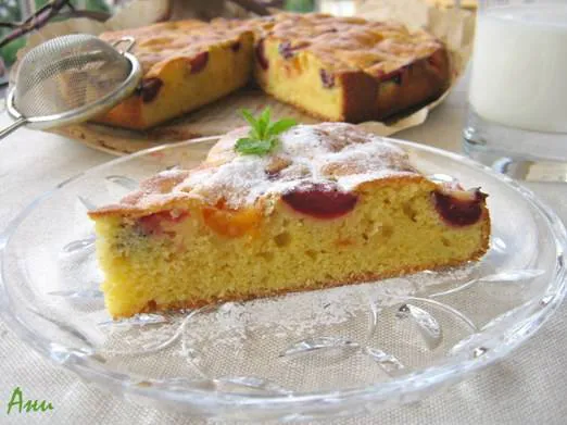 Домашен сладкиш с кайсии и череши - изключително вкусен, лек и пухкав, с приятно кисела нотка от плодовете. Приготвя се много бързо и съм убедена, че не бива да го пропускате!