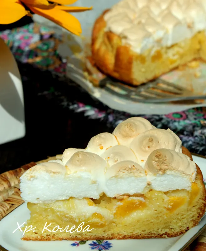Сладкиш с праскови и белтъчна глазура