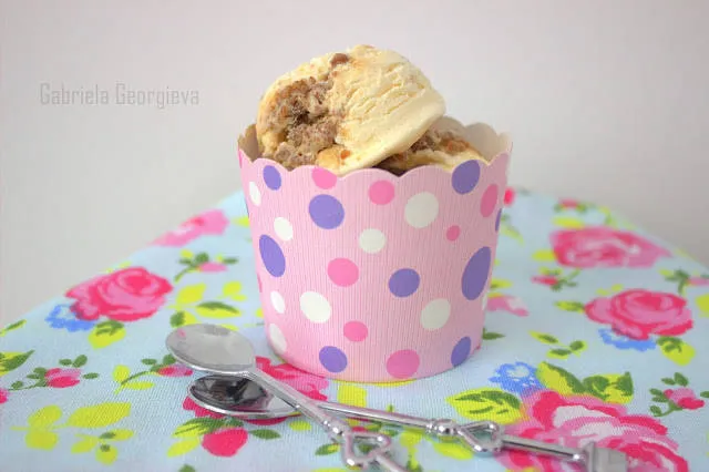 Сладолед с дулсе де лече, парченца шоколад и карамелени лешници