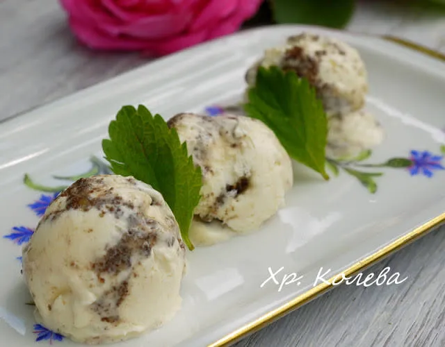 Сладолед с какаови бисквити и ядки