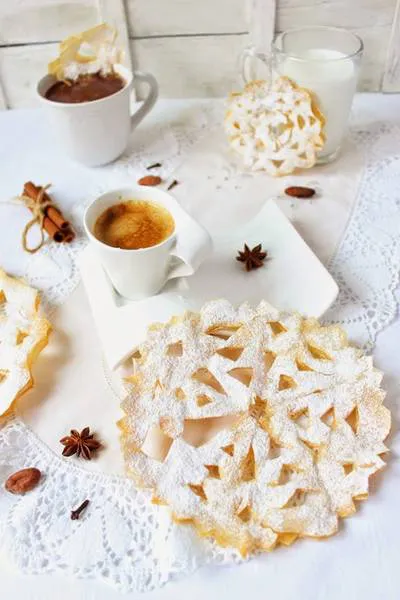 Поднесете с мляко, горещ шоколад, чай или кафе - за закуска или като междини хапване. По избор можете да поръсите някои от снежинките с щипка канела или какао. Можете да поднесете снежинките и поръсени с фино настърган пармезан, или друго предпочитано сирене, като добавка или декорация към вкусни домашни супи. Phyllo Dough Snowflakes
