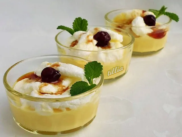Вкусен десерт, с ароматен крем и нежни белтъчни топки, плуващи в него
