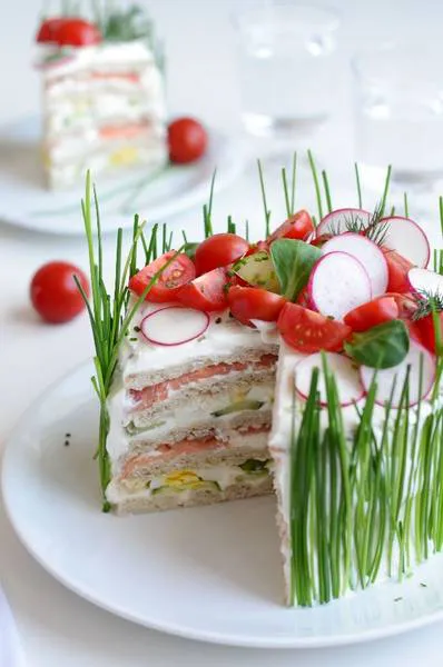 Солена торта с пушена сьомга и варени яйца