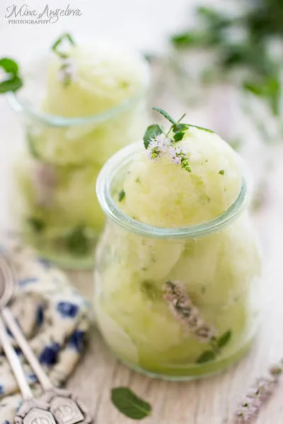 Сорбе от пъпеш с ягодова мента