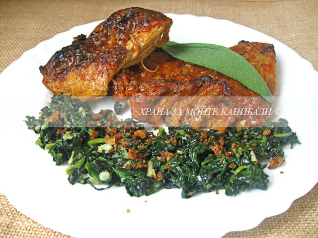 Или простичко казано - спанак с масло и чесън за гарнитура. Може да се поднесе като лека вечеря с парче сирене. Ползвах термина "сотиран", не пържен, защото сотирането е нещо бързо, което се пържи за не повече от 3 ми