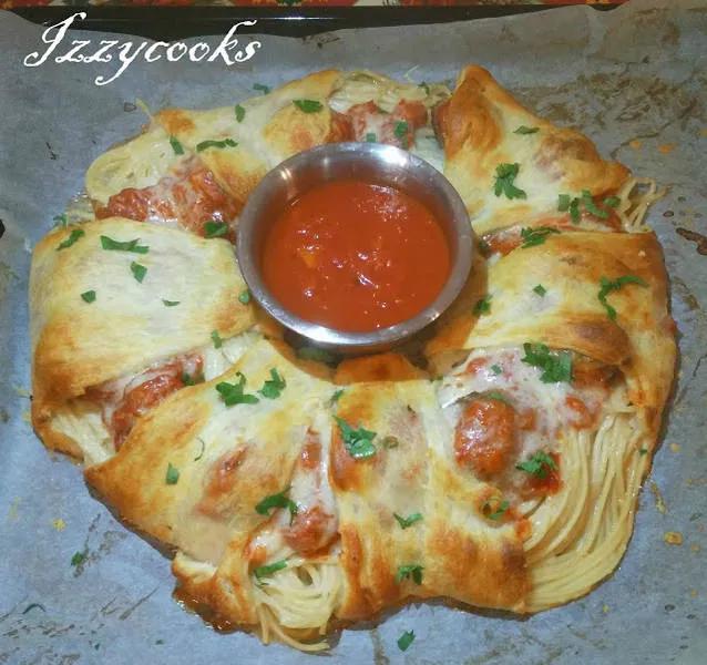 Спагети с кюфтенца в тесто