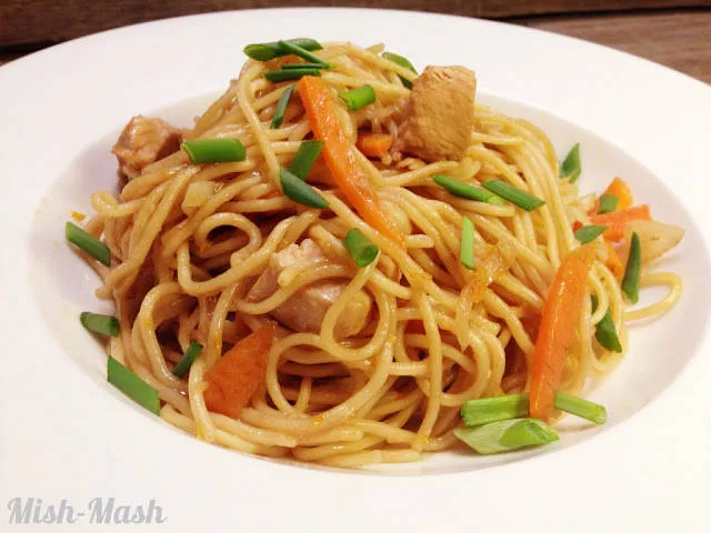 Днес ви предлагам една много ароматна рецепта за спагети с пиле, портокал, зеле, моркови и джинджифил. Може би приготвянето ще ви се стори странно, тъй като спагетите се варят заедно с останалите продукти. Но това спестява както време, така и една допълнителна тенджера за миене :) Опитайте този начин на приготвяне на паста и вярвам, че ще останете доволни от рецептата!