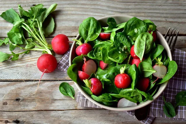 Спаначена салата с репички и джинджифилов дресинг