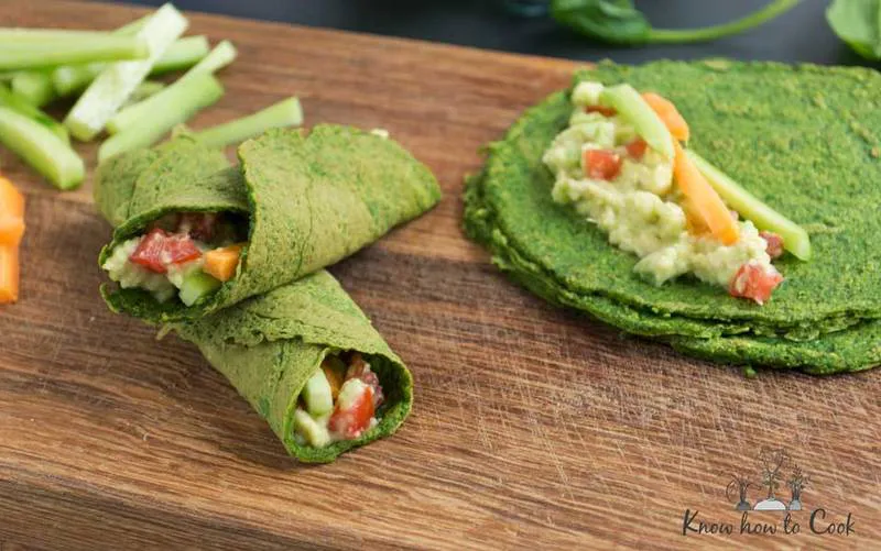 За да не ти се наложи да хапваш палачинки с “конци”, използвай по-млади листа спанак и внимателно отстрани всички дръжки. Гарнирай палачинките според вкуса си и това, с което разполагаш в хладилника.