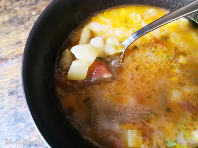 Предлагам ви да опитате тази богата на зеленчуци вегетарианска супа.