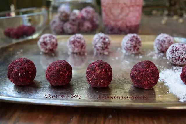 Сурови бонбони от цвекло, кокос, орехи и фурми