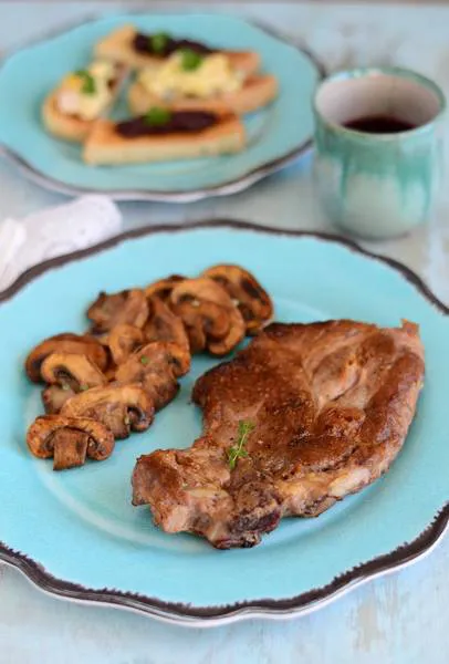 За гарнитура на пържолата с гъби, направете свежа салата, която подхожда прекрасно.