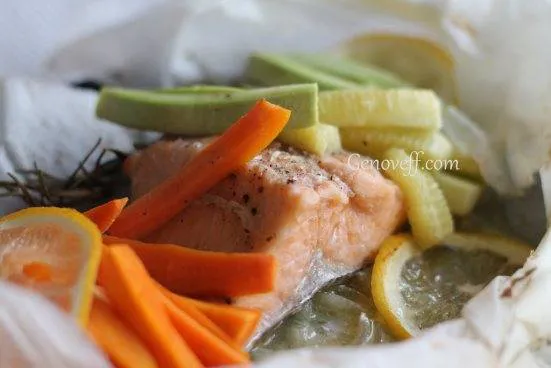 Сьомгова пъстърва в пергамент