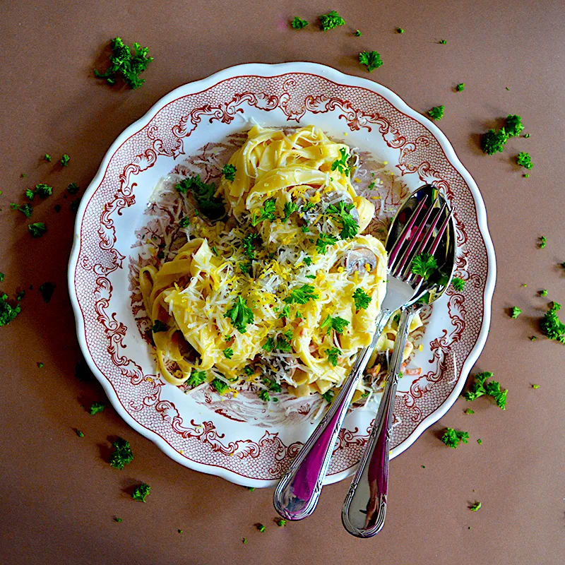 Има ли по-класическа рецепта от паста с гъби и бекон в лек и луксозен сос от крема сирене?