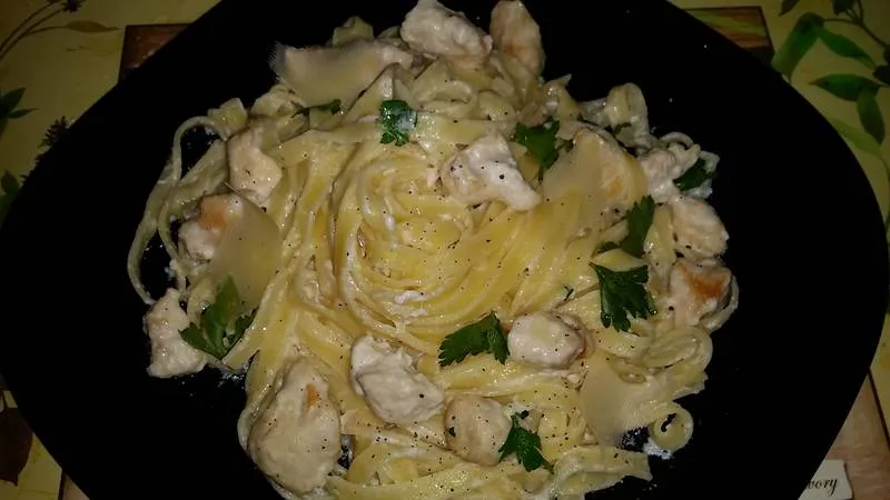 Талиателе с пилешко месо и вкусен сос Алфредо. Различно и вкусно :)