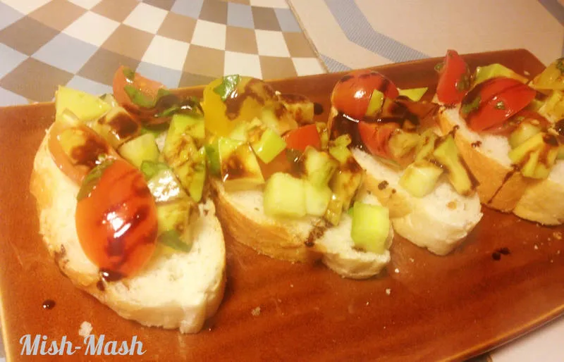 Тапас с авокадо, чери домати и балсамова редукция